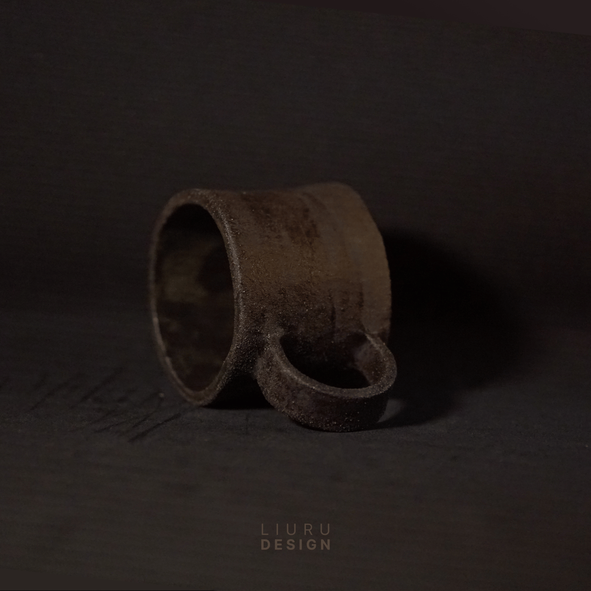 Deep, darkened surfaces marked by fire, where traces of ash and flame reveal a raw, mineral texture and quiet strength.
