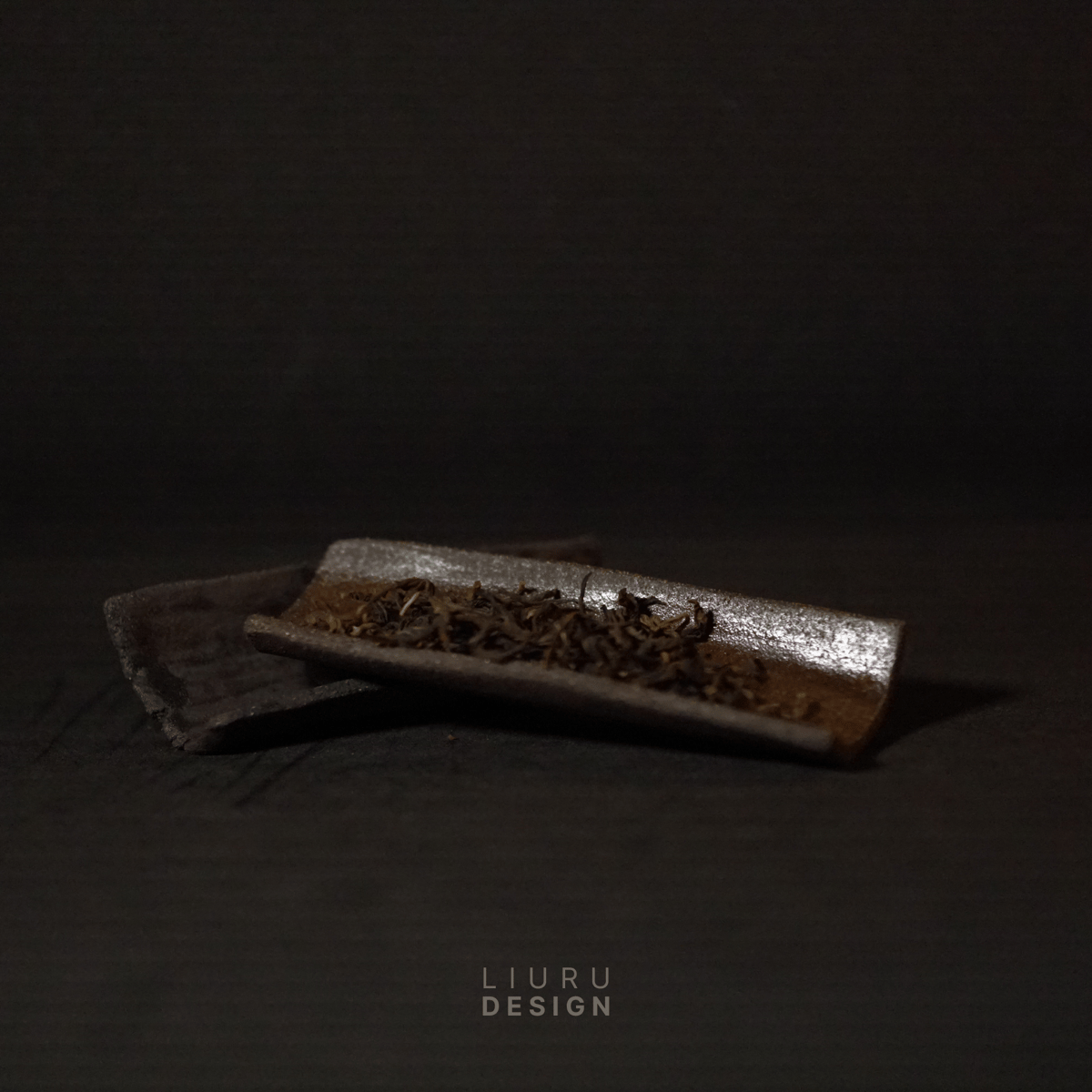Deep, darkened surfaces marked by fire, where traces of ash and flame reveal a raw, mineral texture and quiet strength.